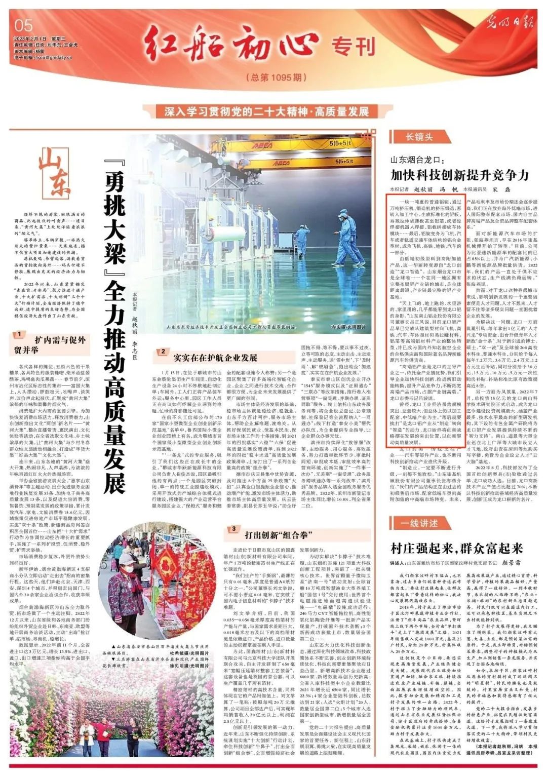 2月1日,《光明日報》“紅船初心”專刊整版聚焦山東《“勇挑大梁”全力推動高質(zhì)量發(fā)展》,南山鋁業(yè)作為龍口市行業(yè)龍頭企業(yè)代表被權(quán)威報道。