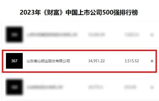 7月25日,2023年《財富》中國500強排行榜揭曉,山東南山鋁業股份有限公司位列榜單385位,較去年上升29位。