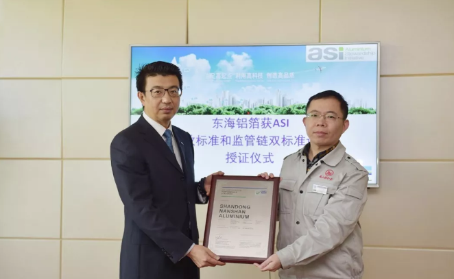 近日,煙臺東海鋁箔有限公司ASI績效標準和監(jiān)管鏈雙標準認證證書的授證儀式在鋁箔公司隆重舉行,煙臺東海鋁箔有限公司成為中國首家獲得ASI雙標準認證的公司。