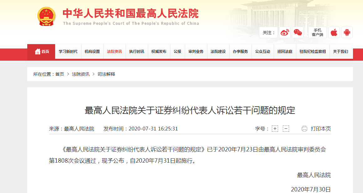 最高人民法院關(guān)于證券糾紛代表人訴訟若干問題的規(guī)定