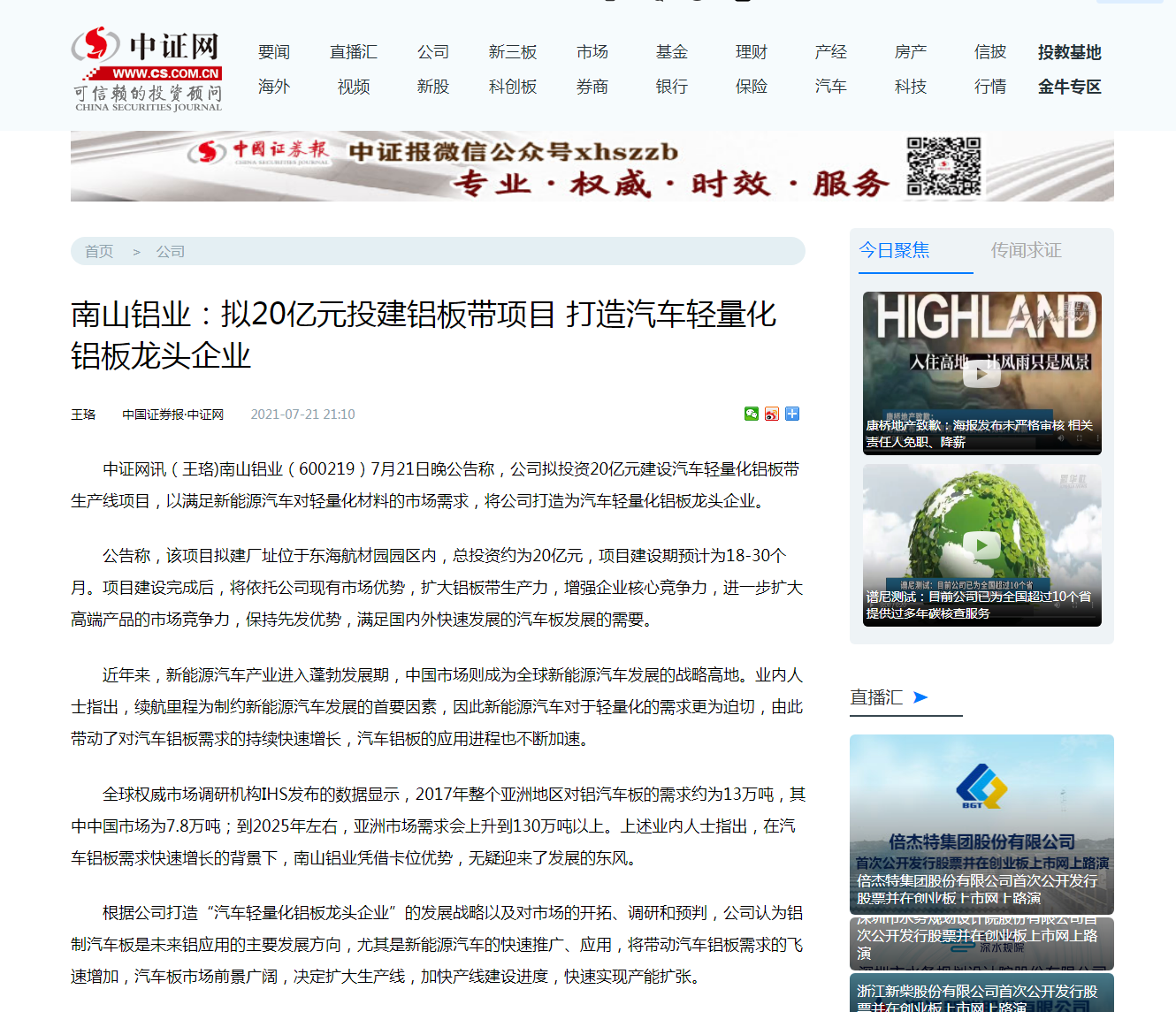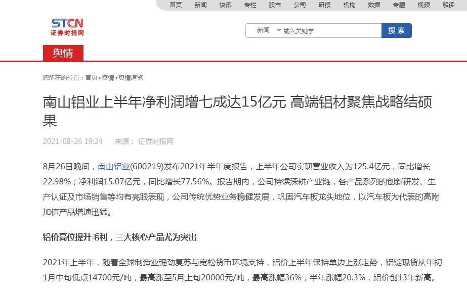 南山鋁業(yè)上半年凈利潤增七成達(dá)15億元-證券時(shí)報(bào)