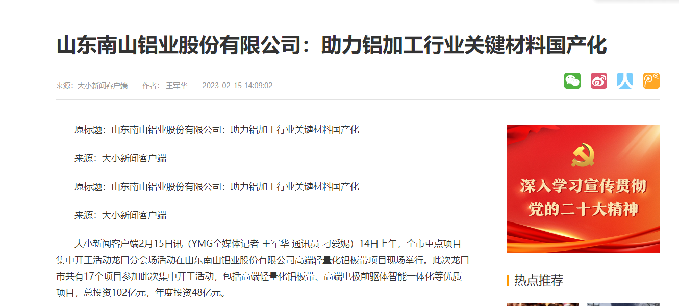 科技日報:南山鋁業引領龍口鋁產業價值飛躍